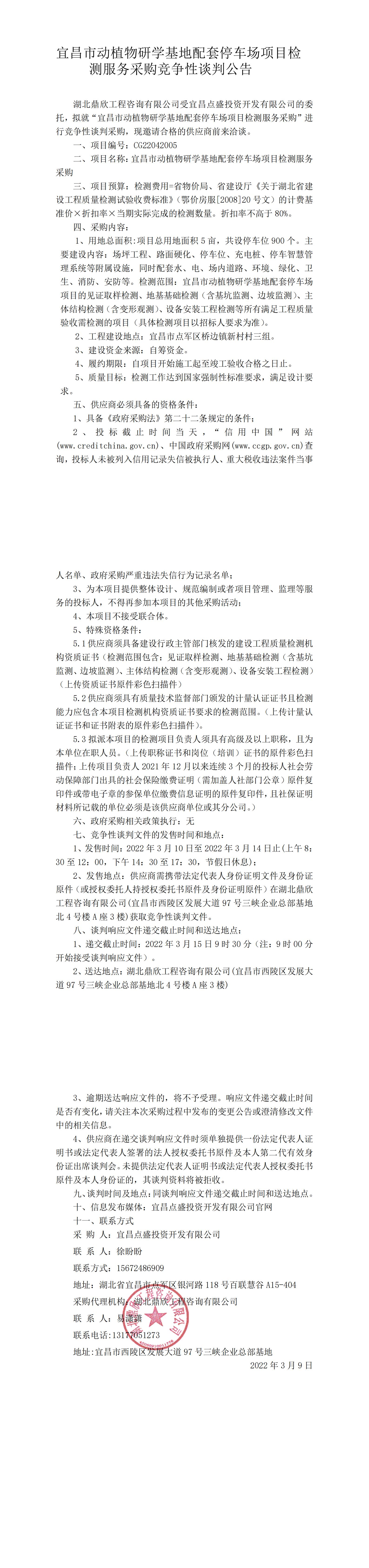 宜昌市動(dòng)植物研學(xué)基地配套停車(chē)場(chǎng)項(xiàng)目檢測(cè)服務(wù)采購(gòu)競(jìng)爭(zhēng)性談判公告
