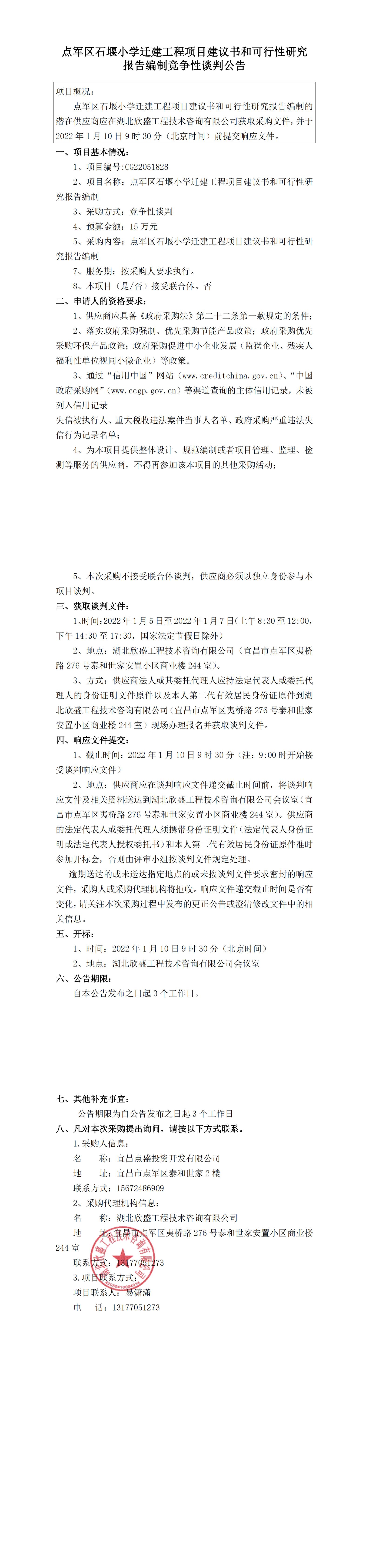 點(diǎn)軍區(qū)石堰小學(xué)遷建工程項(xiàng)目建議書(shū)和可行性研究報(bào)告編制競(jìng)爭(zhēng)性談判公告