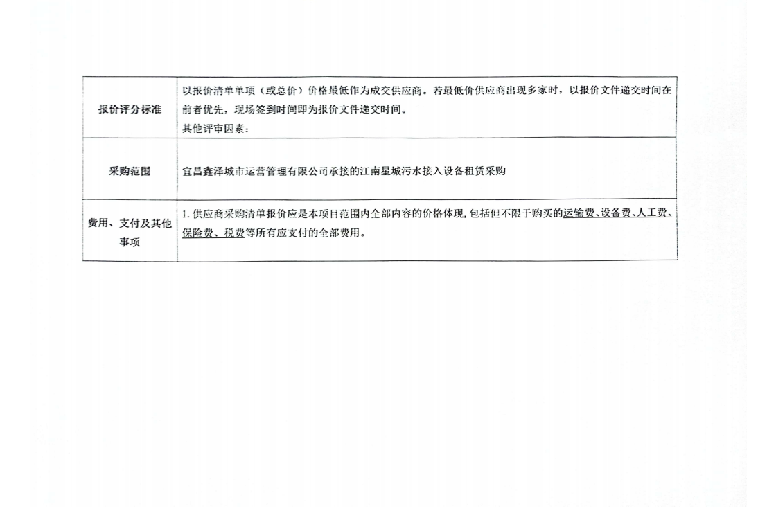 江南星城污水接入設(shè)備租賃采購詢價(jià)公告