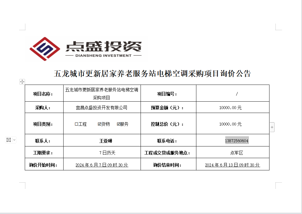 五龍城市更新居家養(yǎng)老服務(wù)站電梯空調(diào)采購項(xiàng)目詢價(jià)公告