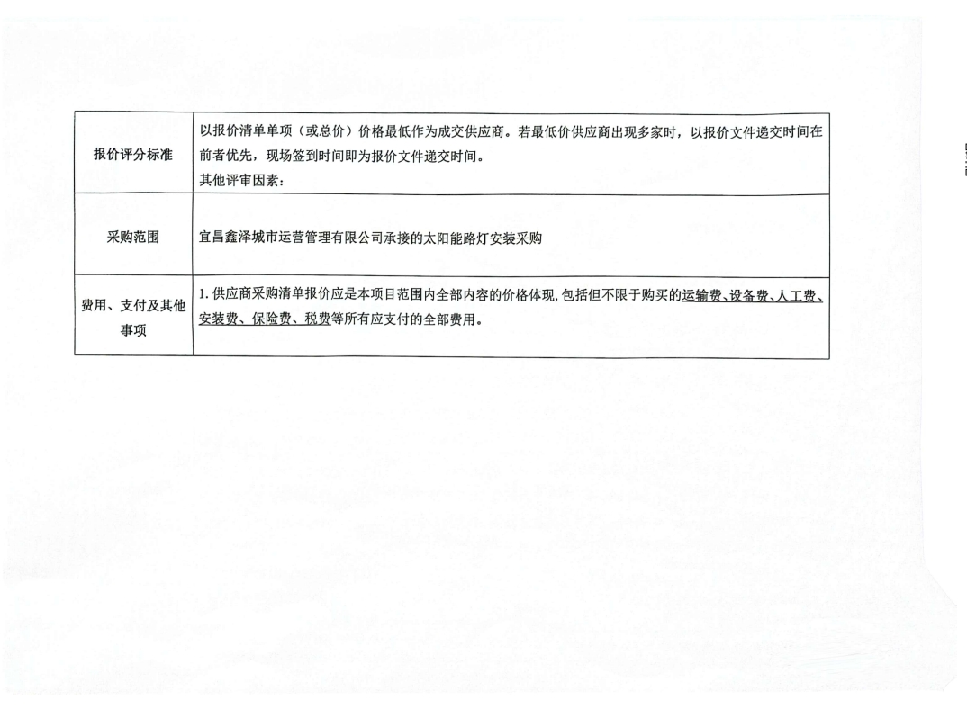 宜昌鑫澤城市運(yùn)營管理有限公司太陽能路燈采購項(xiàng)目詢價(jià)公告