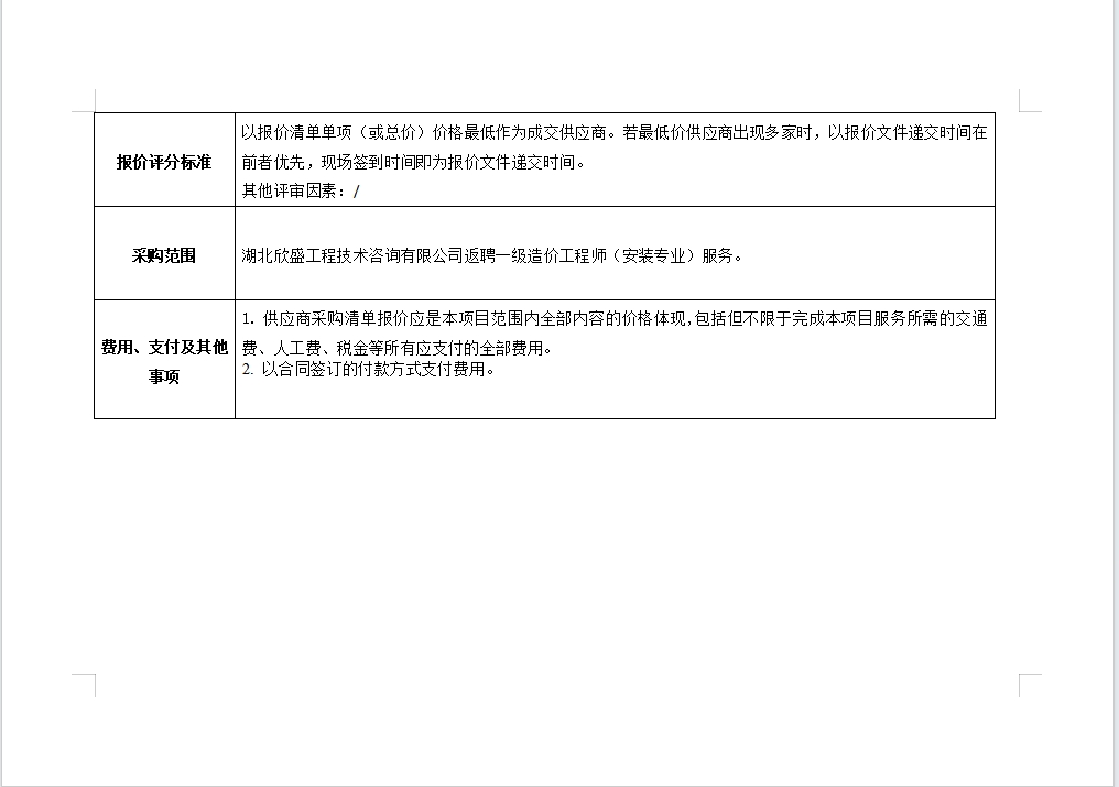 欣盛公司返聘一級(jí)造價(jià)工程師(安裝專業(yè))咨詢服務(wù)詢價(jià)公告