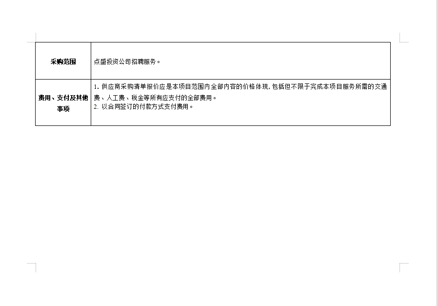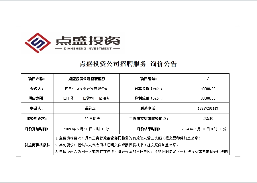 點(diǎn)盛投資公司招聘服務(wù)詢價(jià)公告