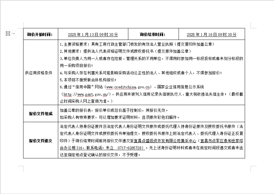 詢價(jià)公告