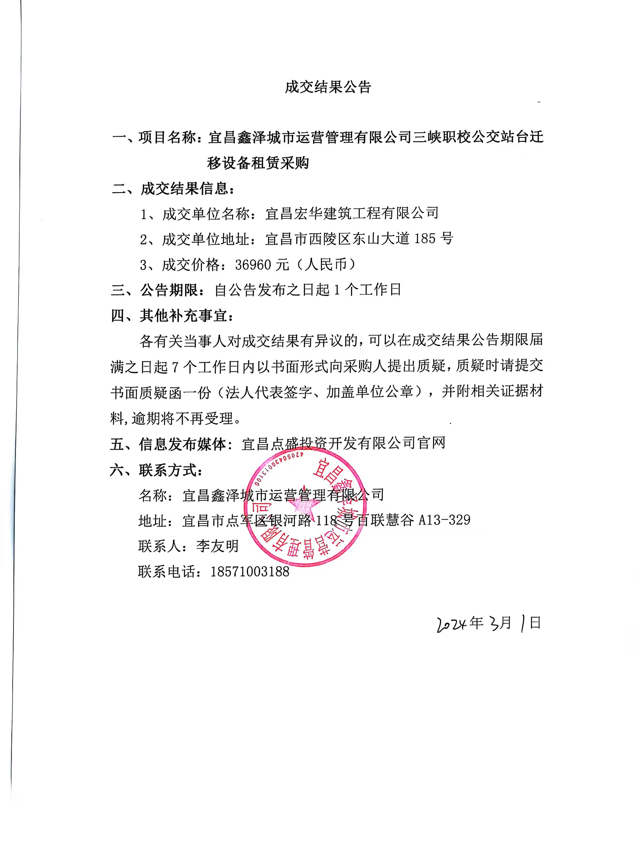 三峽職校公交站臺(tái)遷移項(xiàng)目設(shè)備租賃采購成交公告