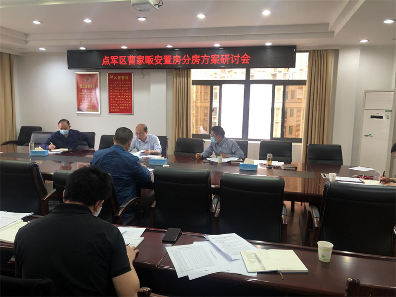 2020年4月30日,區(qū)委書記宋濤、區(qū)委副書記區(qū)長高杰、區(qū)人大常委會主任王懷炳、區(qū)城建公司副總經理陳啟國、區(qū)住房保障中心副主任魏京偉、區(qū)土城鄉(xiāng)鄉(xiāng)長王小平等人研討點軍區(qū)曹家畈安置房選房方案。